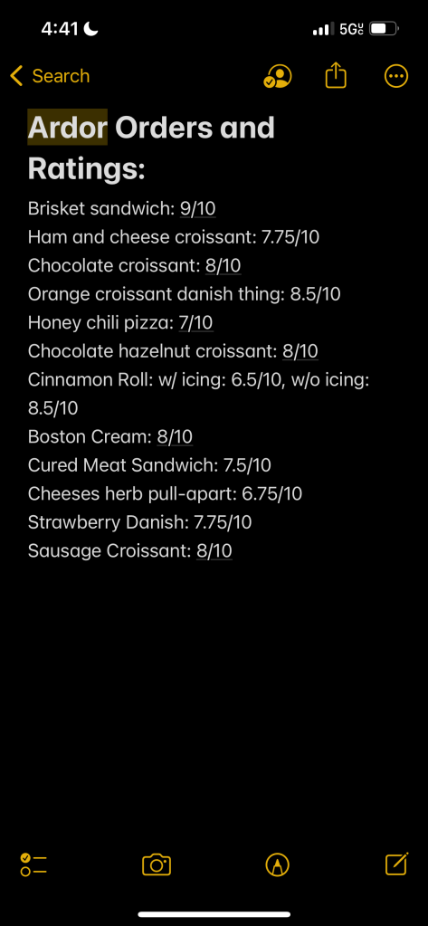 My first time going here was with a group of friends, and when I first visited, they hadn’t even had expanded yet. We were all waiting outside the door for our pastries and the first time I went, I ended up getting a brisket sandwich, which is probably not ideal for a place built on pastries. I absolutely had to come back here though because the sandwich was DELICIOUS. The place was so good that I had to keep track of everything I had ordered there and put ratings with each one (my full ranking will be at the bottom of this post).